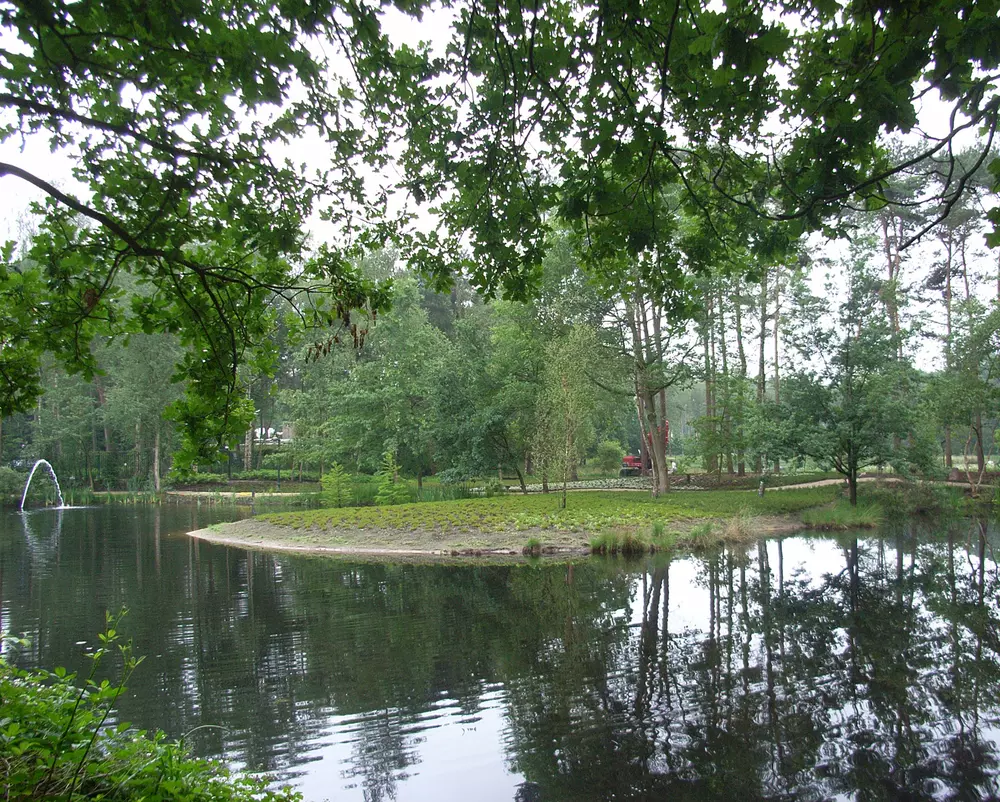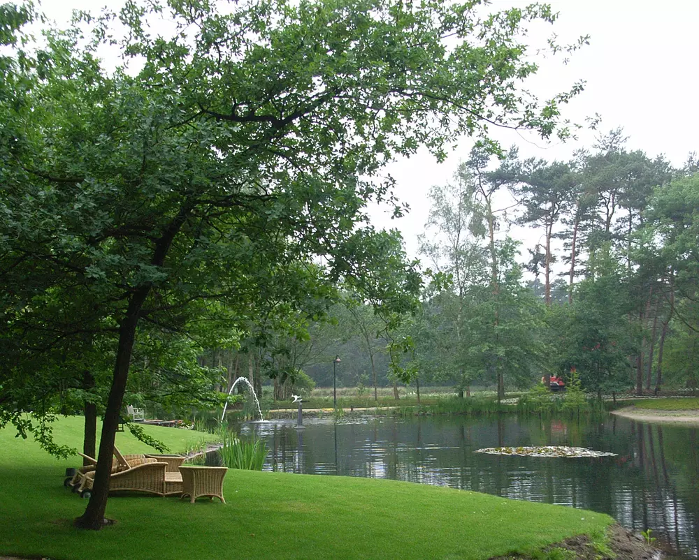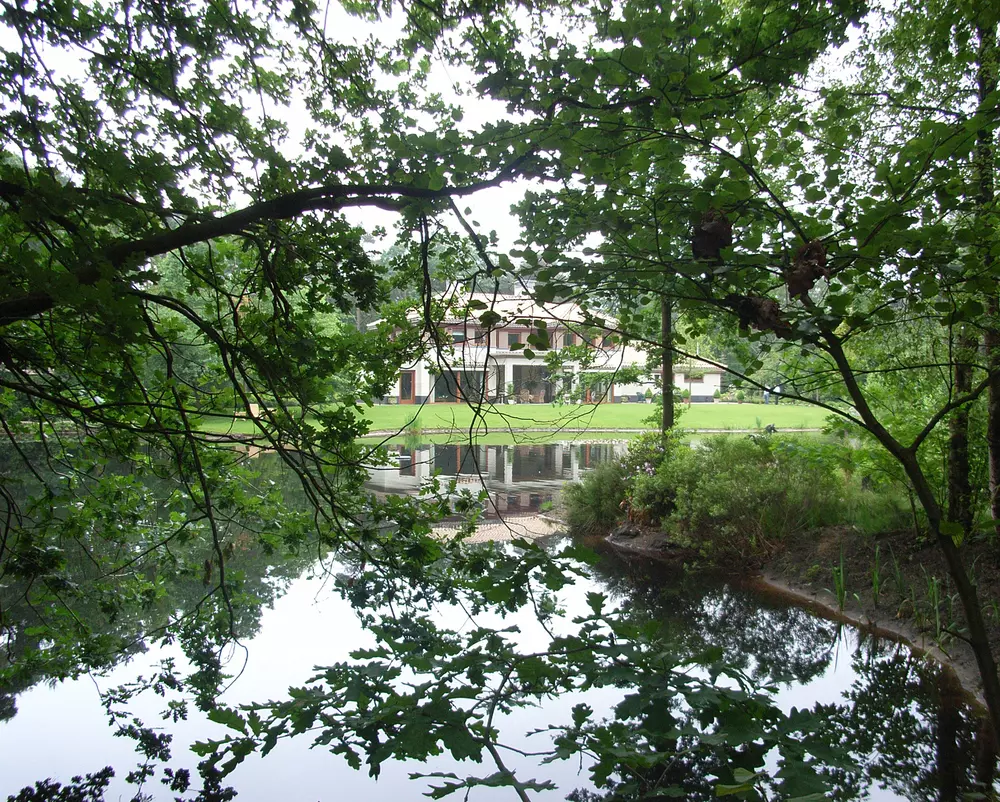 Het andere deel van de kavel heeft een halfnatuurlijke inrichting gekregen. Vanuit de loggia van de villa zijn er zichtlijnen over het terrein gemaakt, waarvoor een deel van het bos is omgevormd tot heide en twee vennen zijn samengevoegd tot een groot ven. Rond het ven is een doorgaand pad aangelegd met verschillende doorkijken naar de villa.