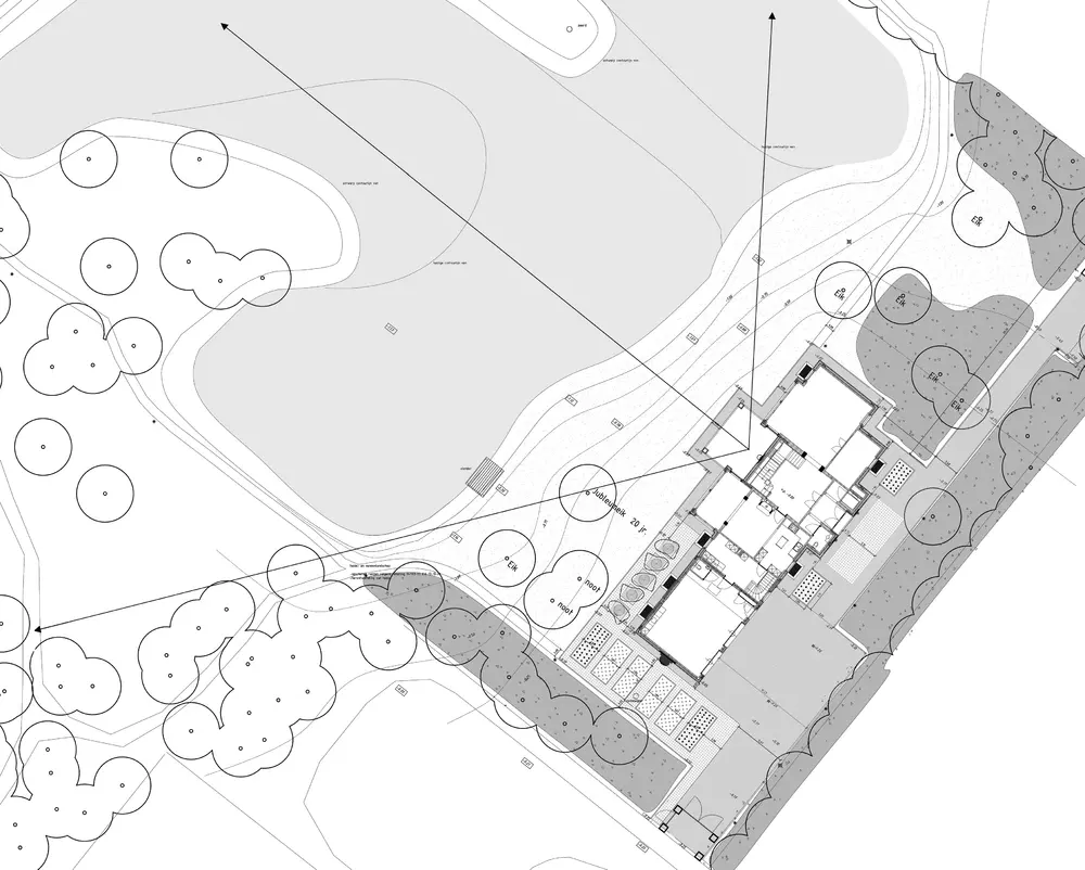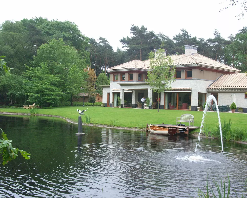 De nieuwe villa die in Toscaanse stijl is gebouwd, ligt in een oud bos- en vennengebied dat in de jaren vijftig van de vorige eeuw is verkaveld. Het gaat om een grote, dichtgegroeide kavel met meerdere vennen. Het woonhuis ligt aan de rand van de kavel, op de overgang van ven naar bos.