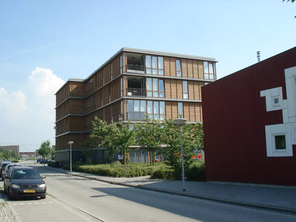Claus en Kaan Architecten hebben een woonblok ontworpen die deel uitmaakt van de woonwijk 't Buitenland. Dit blok met rode houten huizen is geïnspireerd op Denemarken en is in een V-vorm gegroepeerd rond een grote, gezamenlijke binnenplaats die fungeert als het hart van het blok.