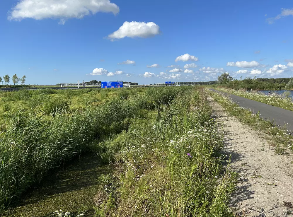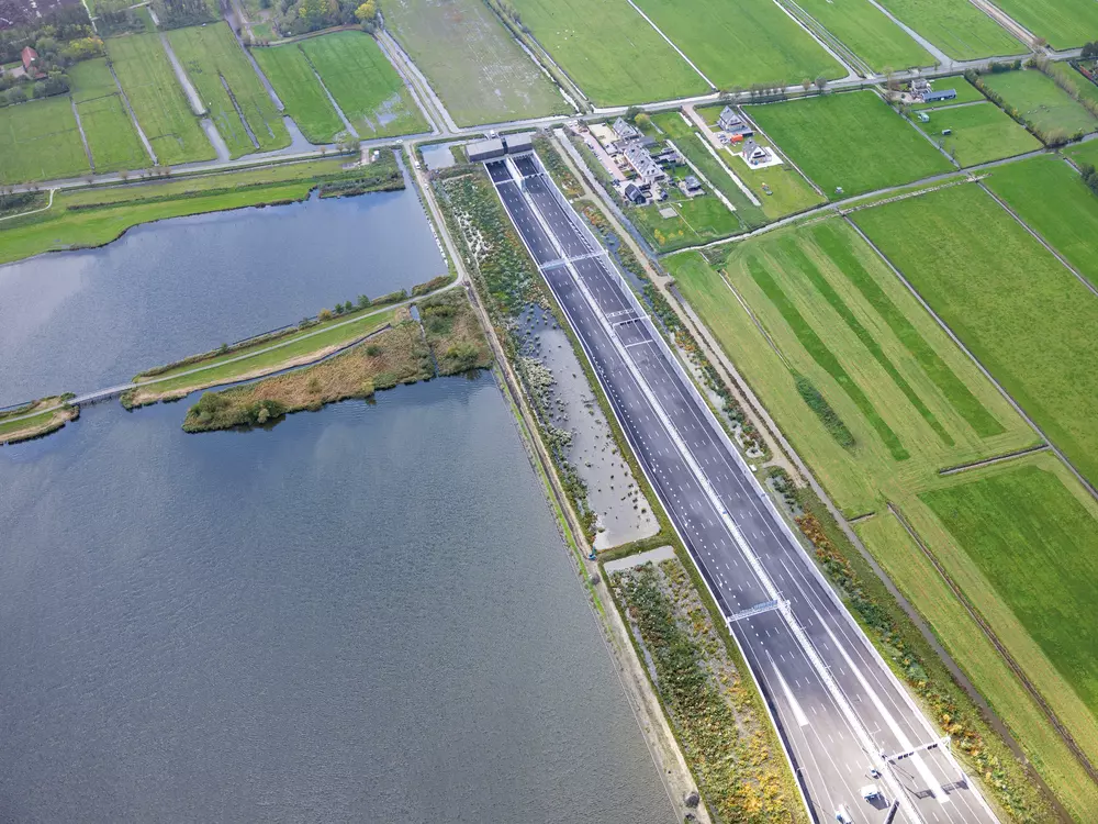De A24 heeft twee gezichten. In het kwetsbare veenweidelandschap van de Aalkeetpolder is de snelweg, samen met de dienstgebouwen, zo onzichtbaar mogelijk ingepast. Verdiepte tunnelbakken en brede rietzones laten de infrastructuur opgaan in het landschap.Â